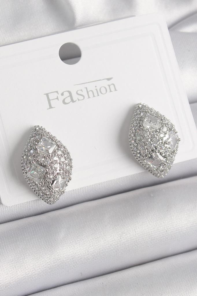 Pirinç Gümüş Renk Zirkon Taş İşlemeli Damla Model Kadın Küpe - TJ-BKP9863