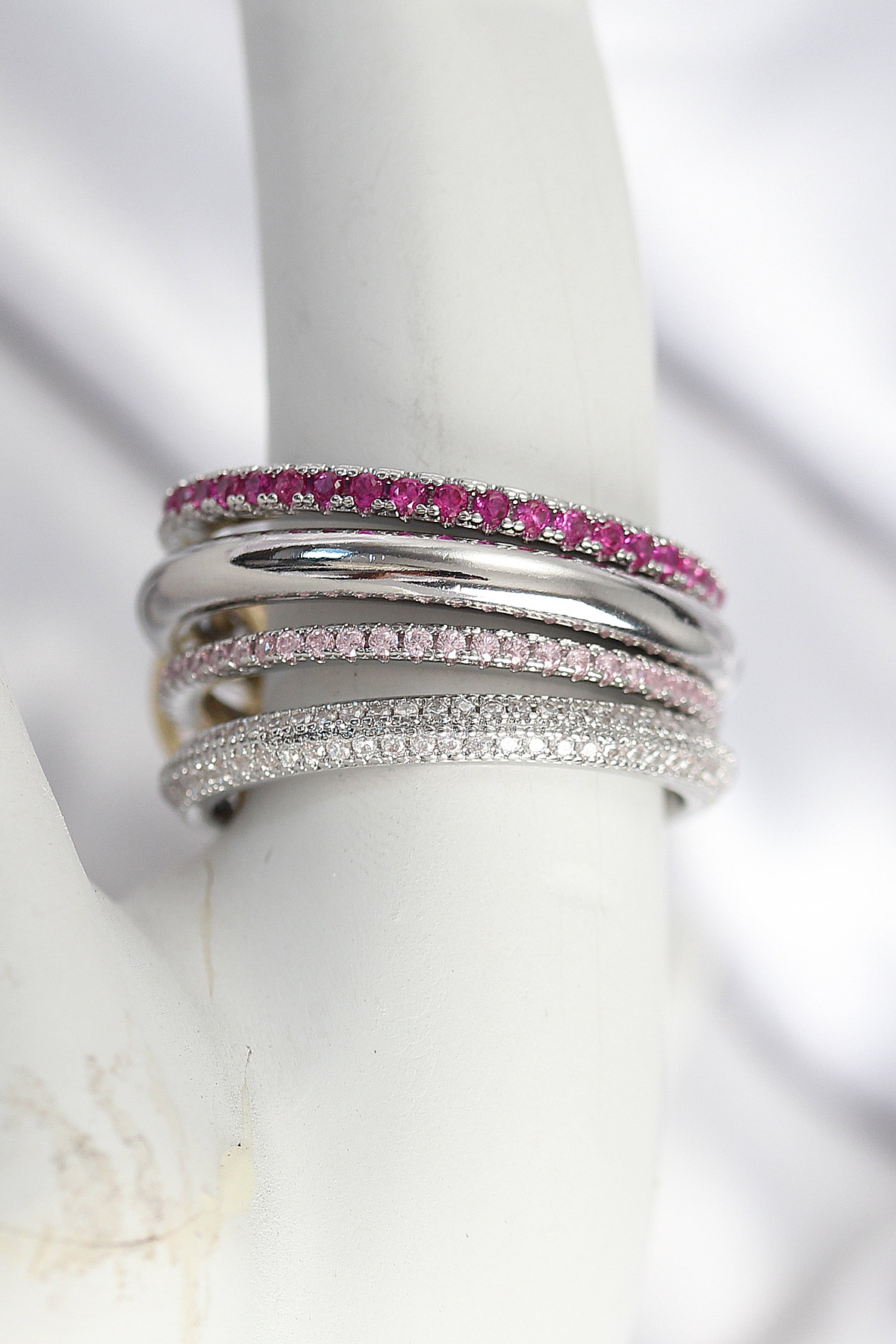 Pirinç Gümüş Renk Zirkon Taşlı 4'Lü Kadın Yüzük - TJ-BYK3828