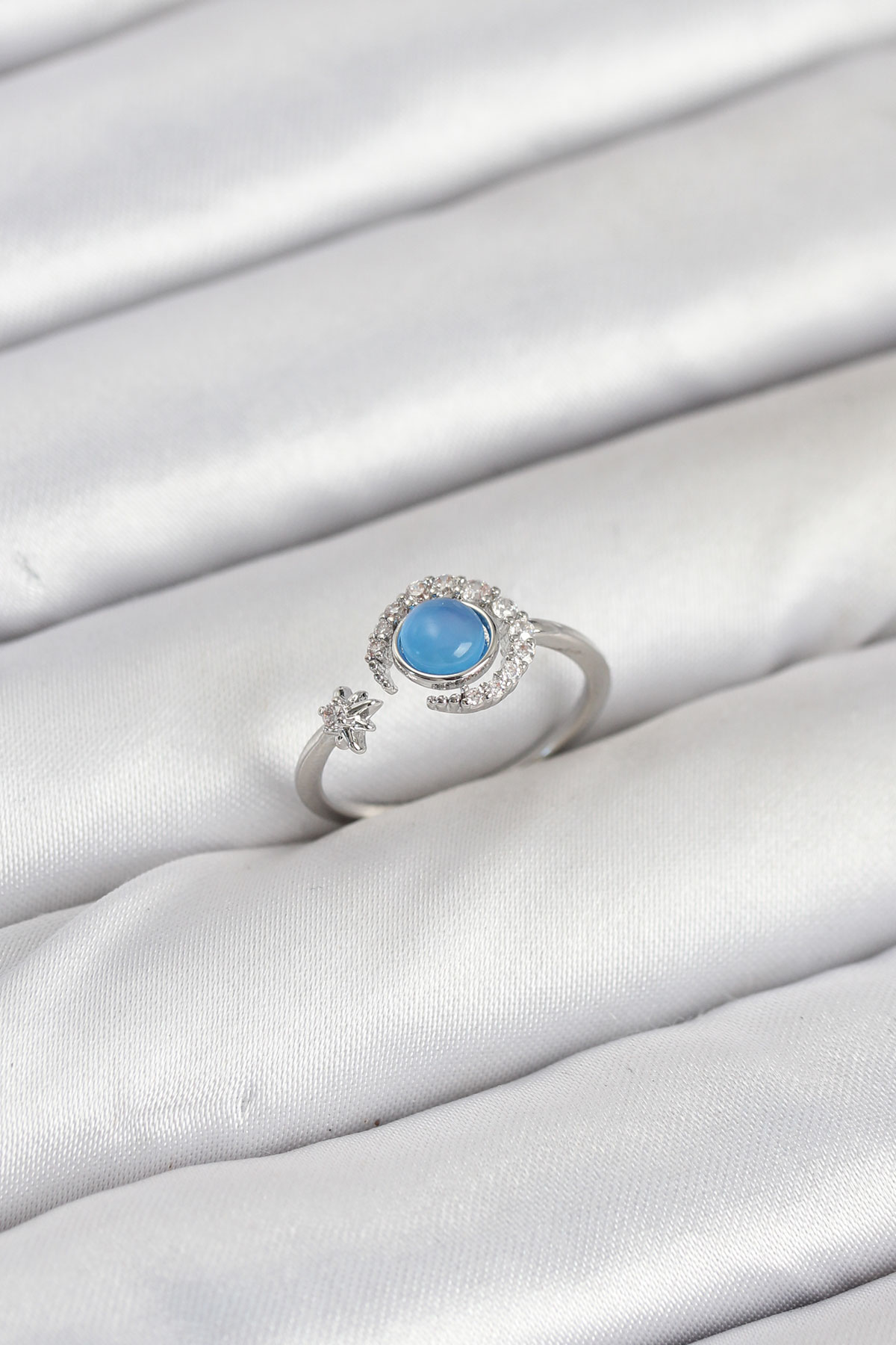 Pirinç Gümüş Renk Zirkon Taşlı Ay Yıldız Kadın Yüzük - TJ-BYK3861
