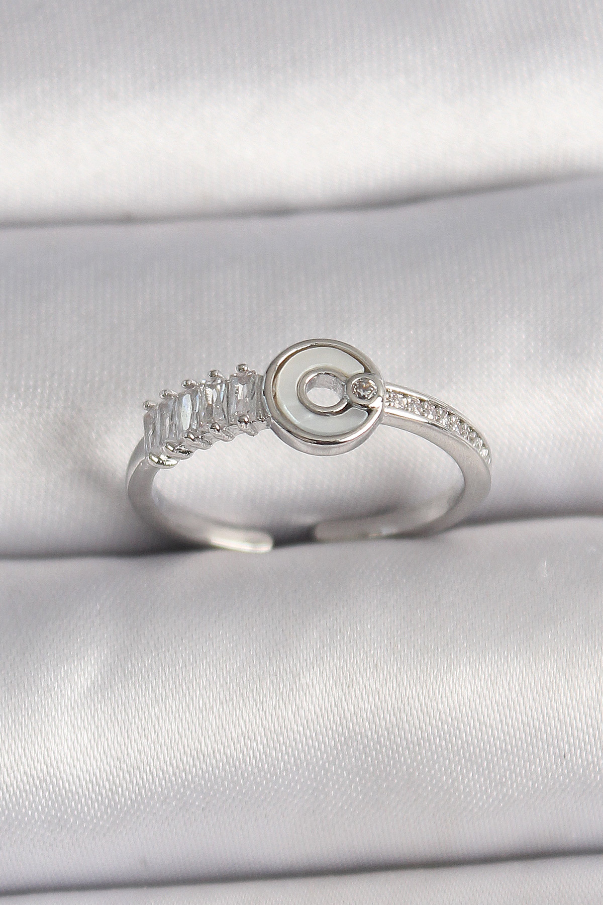 Pirinç Gümüş Renk Zirkon Taşlı Ayarlanabilir Kadın Yüzük - TJ-BYK3562