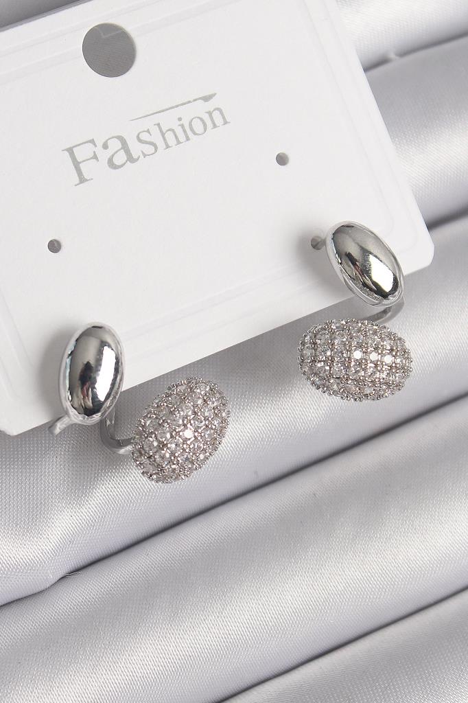 Pirinç Gümüş Renk Zirkon Taşlı Bombeli Model Kadın Küpe - TJ-BKP9753