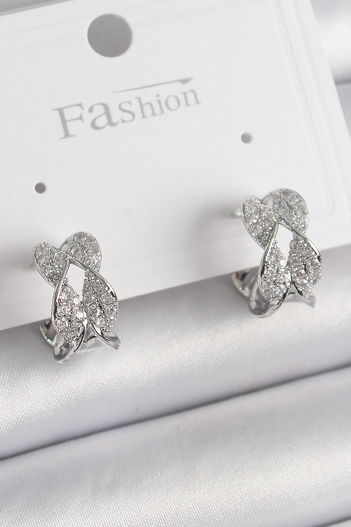 Pirinç Gümüş Renk Zirkon Taşlı Burgu Model Kadın Küpe - TJ-BKP9865