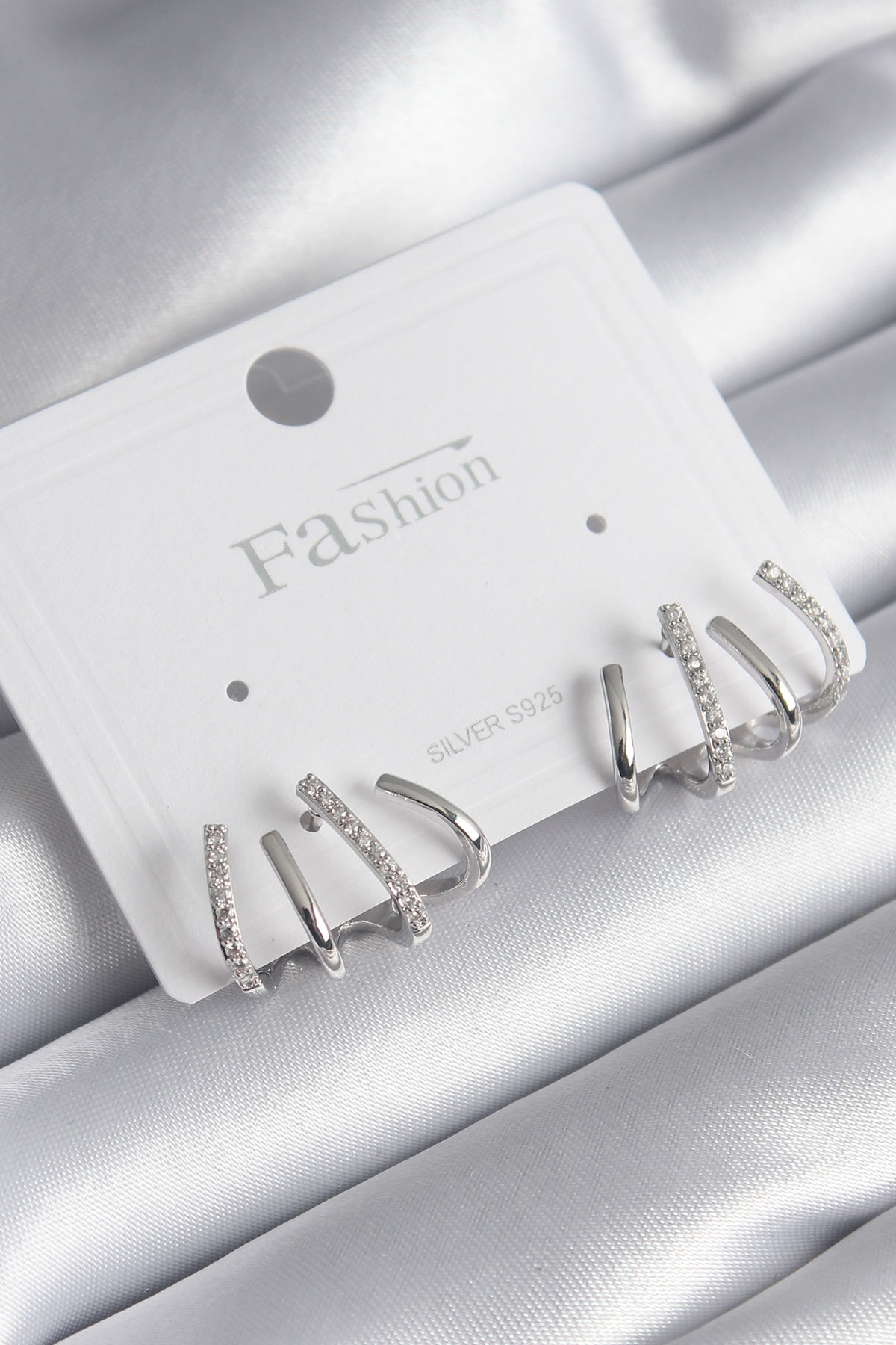 Pirinç Gümüş Renk Zirkon Taşlı Çatal Model Kadın Küpe - TJ-BKP8512
