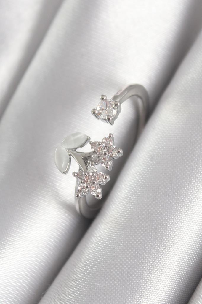 Pirinç Gümüş Renk Zirkon Taşlı Çiçek Model Kadın Yüzük - TJ-BYK3068