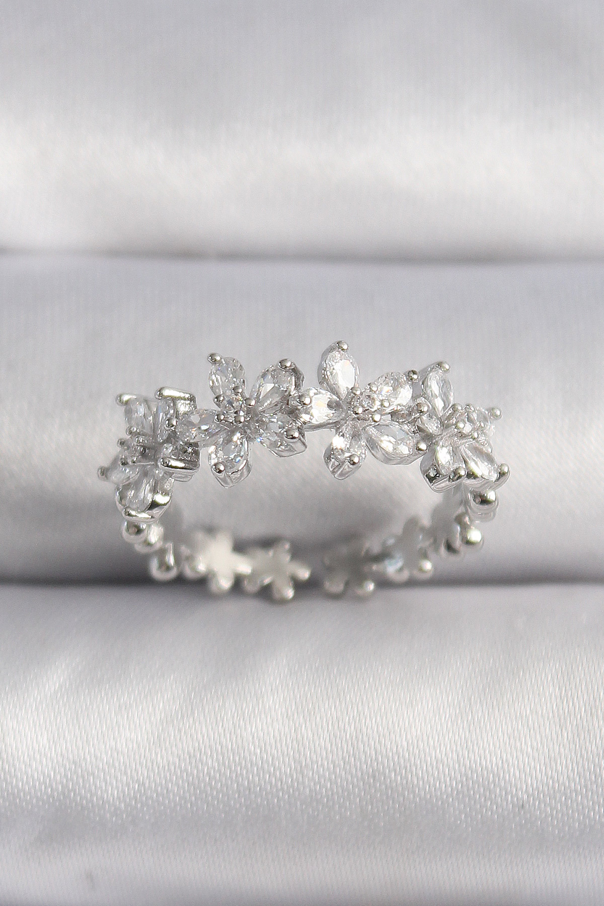 Pirinç Gümüş Renk Zirkon Taşlı Çiçek Model VIP Seri Kadın Yüzük - TJ-BYK3517