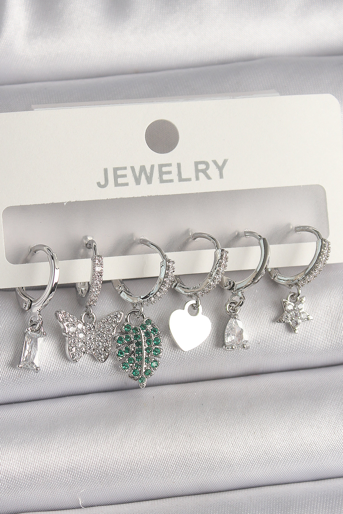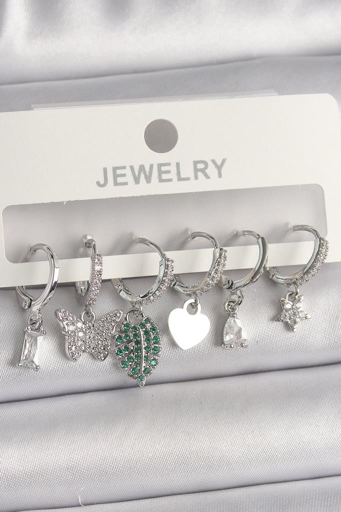 Pirinç Gümüş Renk Zirkon Taşlı Çoklu Figür Kadın Küpe Seti - TJ-BKP10097