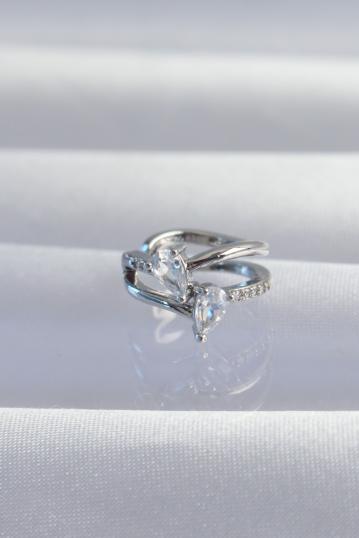 Pirinç Gümüş Renk Zirkon Taşlı Damla Earcuff Küpe - TJ-BKP9334
