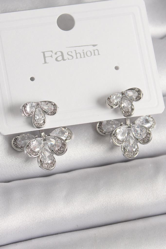 Pirinç Gümüş Renk Zirkon Taşlı Damla Model Kadın Küpe - TJ-BKP9940