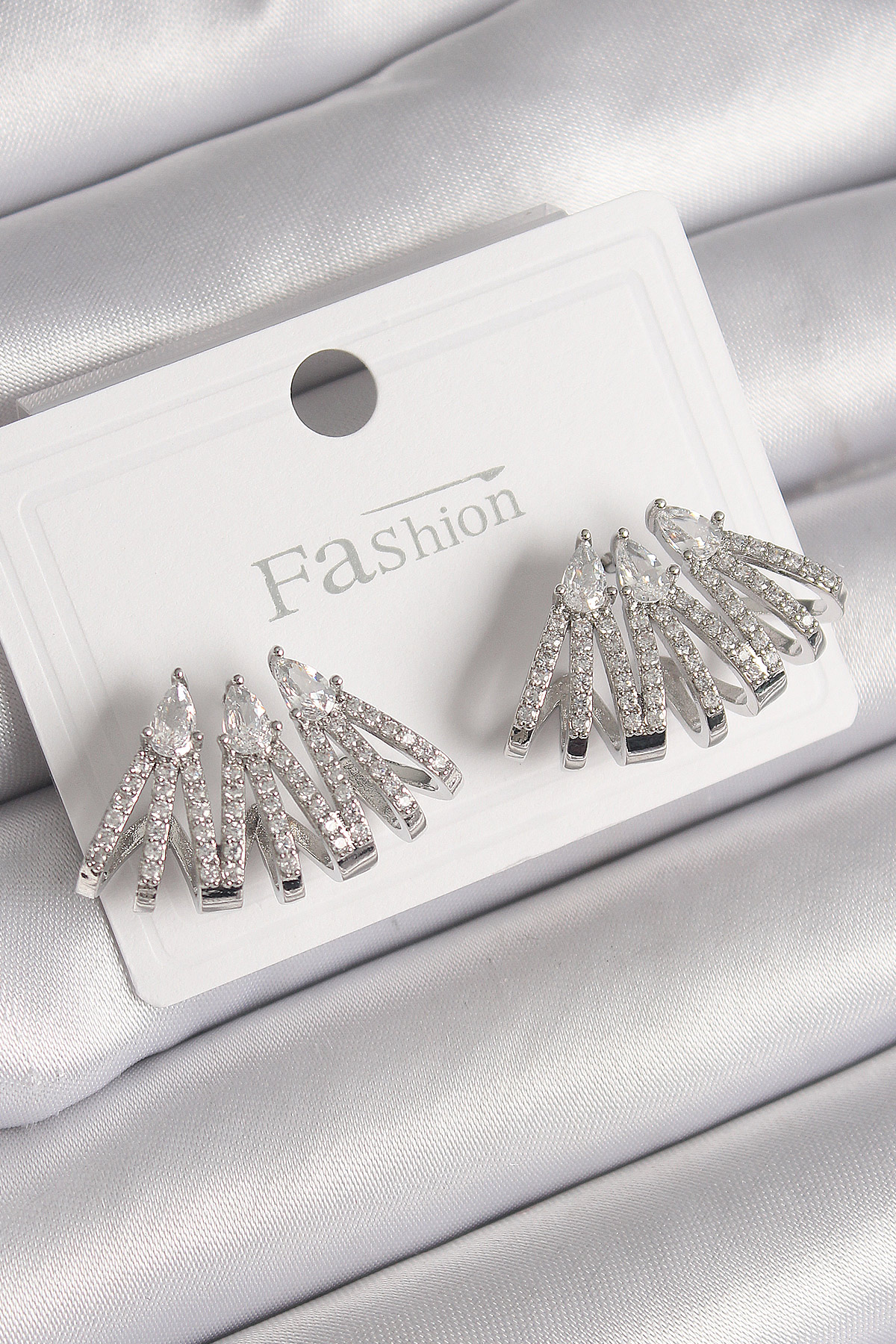 Pirinç Gümüş Renk Zirkon Taşlı Deniz Kabuğu Model Kadın Küpe - TJ-BKP9797