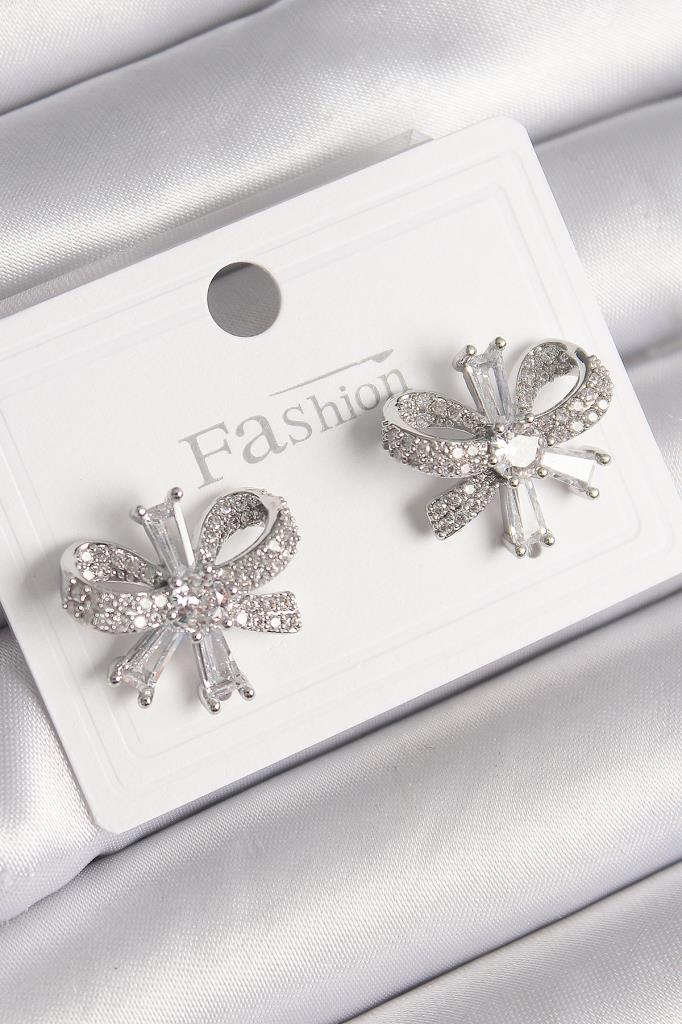 Pirinç Gümüş Renk Zirkon Taşlı Fiyonk Model Kadın Küpe - TJ-BKP9779