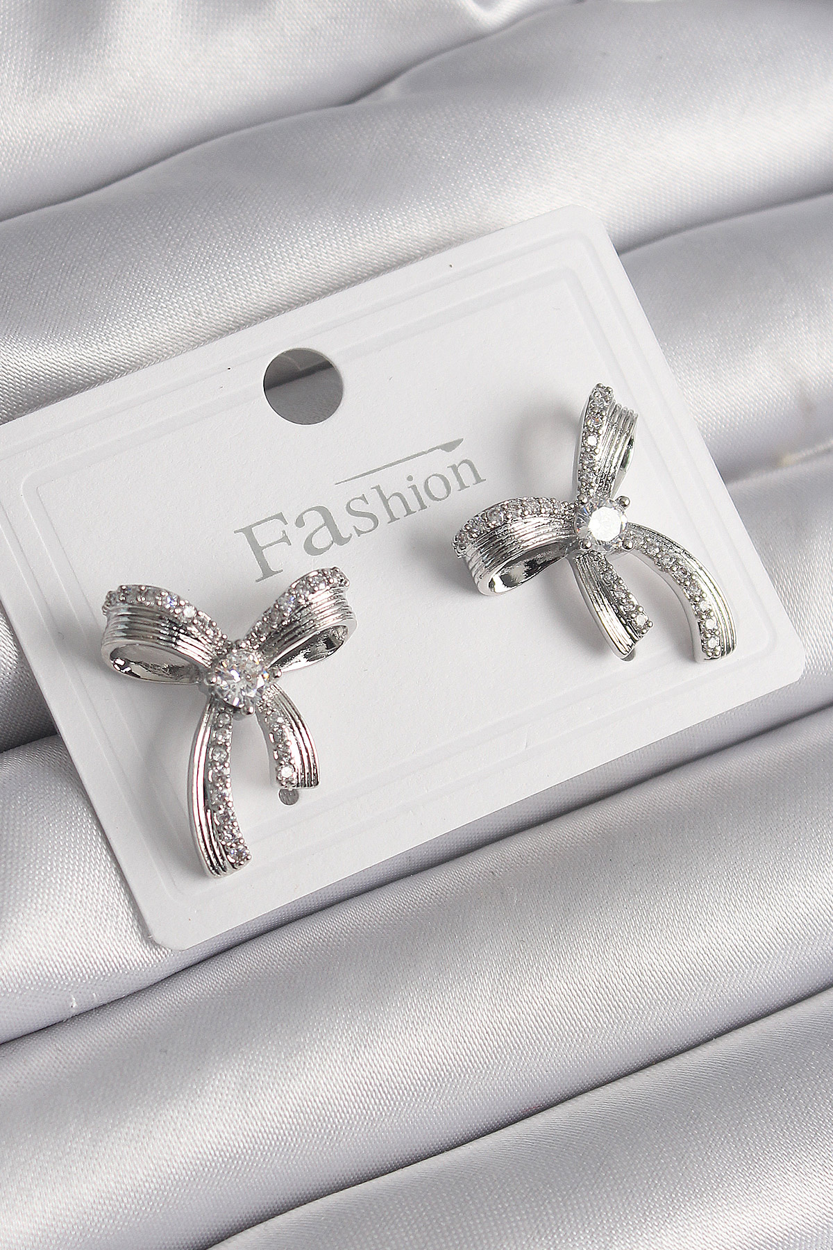 Pirinç Gümüş Renk Zirkon Taşlı Fiyonk Model Kadın Küpe - TJ-BKP9992