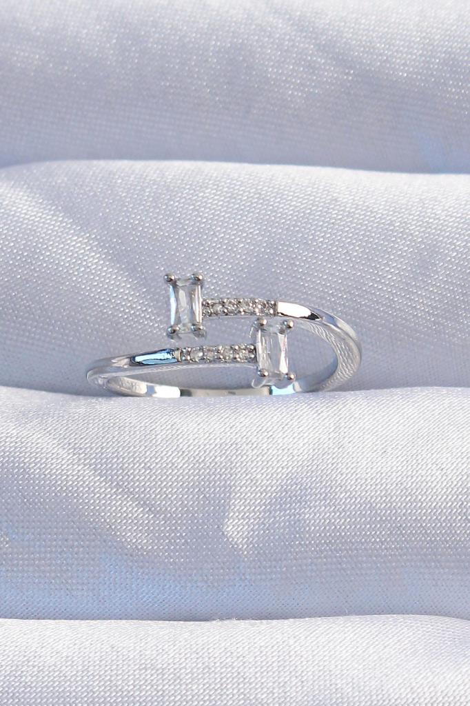 Pirinç Gümüş Renk Zirkon Taşlı Geometrik Ayarlanabilir Yüzük - TJ-BYK3240