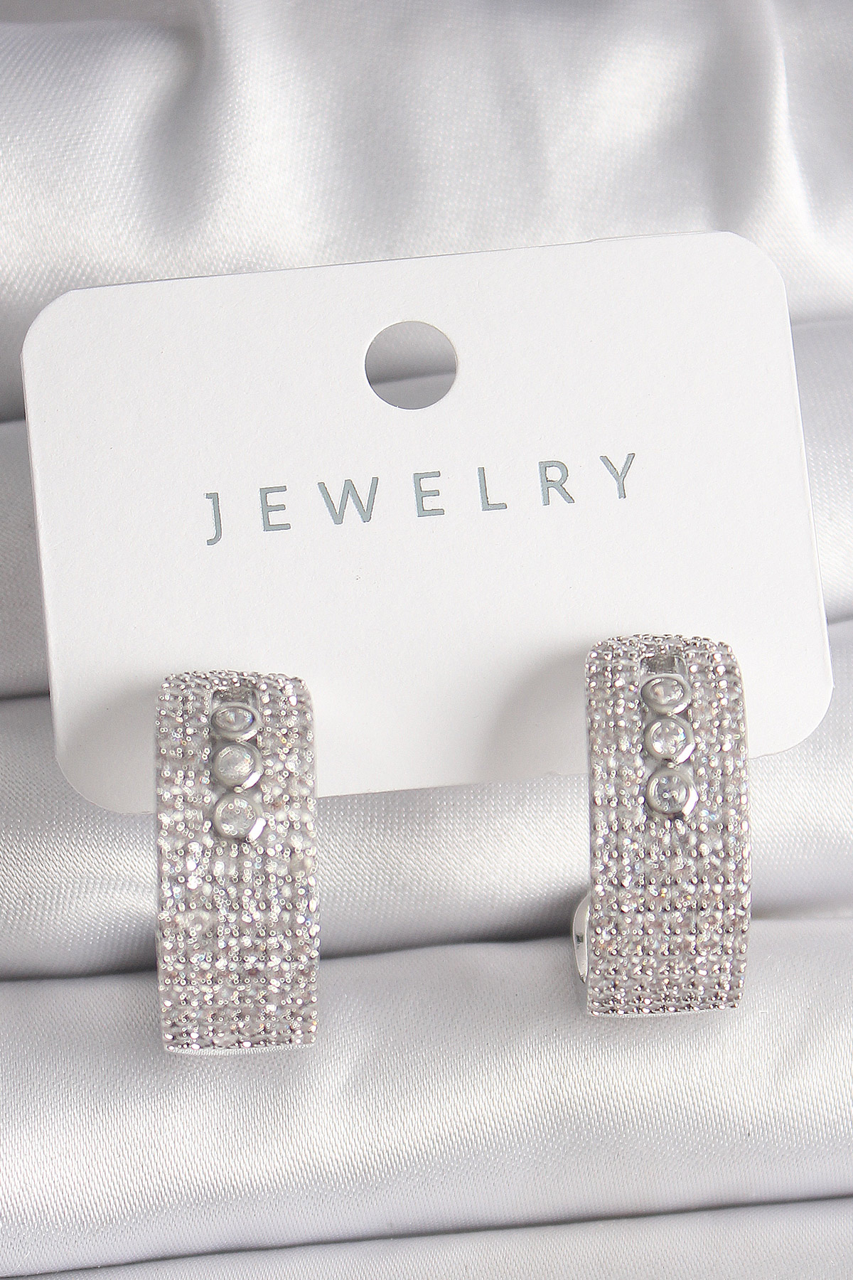 Pirinç Gümüş Renk Zirkon Taşlı Halka Messika Model Kadın Küpe - TJ-BKP10018