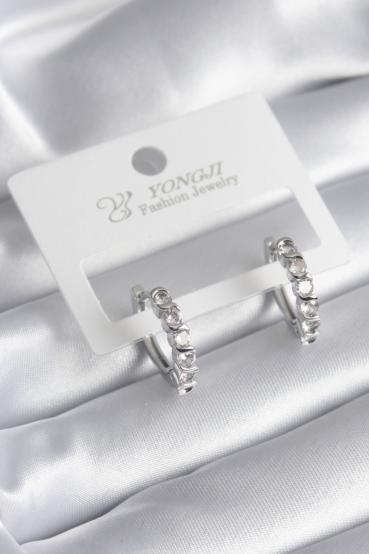 Pirinç Gümüş Renk Zirkon Taşlı Halka Model Kadın Küpe - TJ-BKP8339