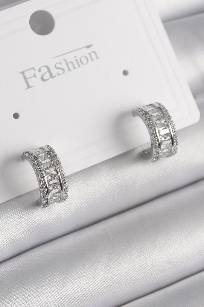 Pirinç Gümüş Renk Zirkon Taşlı Halka Model Kadın Küpe - TJ-BKP9988