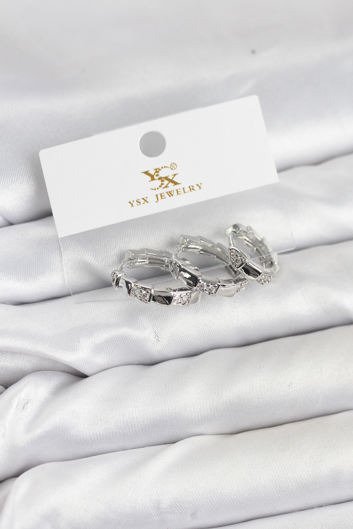 Pirinç Gümüş Renk Zirkon Taşlı Halka Yılan Model YSX Trio Küpe Seti - TJ-BKP11573