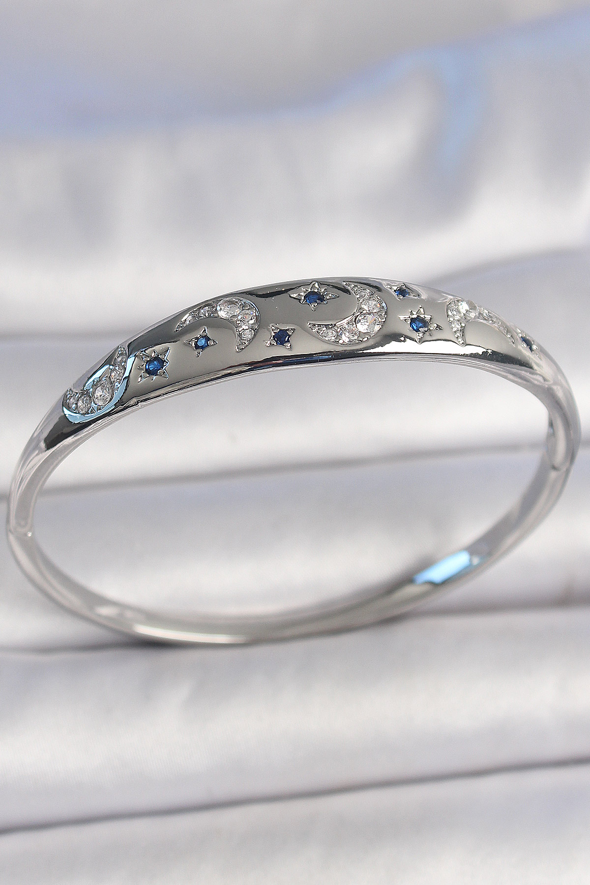 Pirinç Gümüş Renk Zirkon Taşlı Hilal İşlemeli Mavi Taşlı Yıldız Detay Kadın Kelepçe - TJ-BB6921