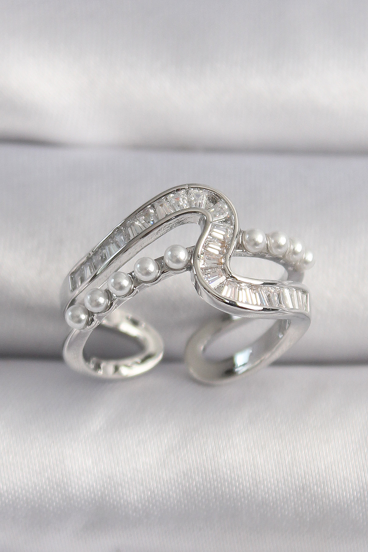 Pirinç Gümüş Renk Zirkon Taşlı İnci Detay VIP Seri Kadın Yüzük - TJ-BYK3511