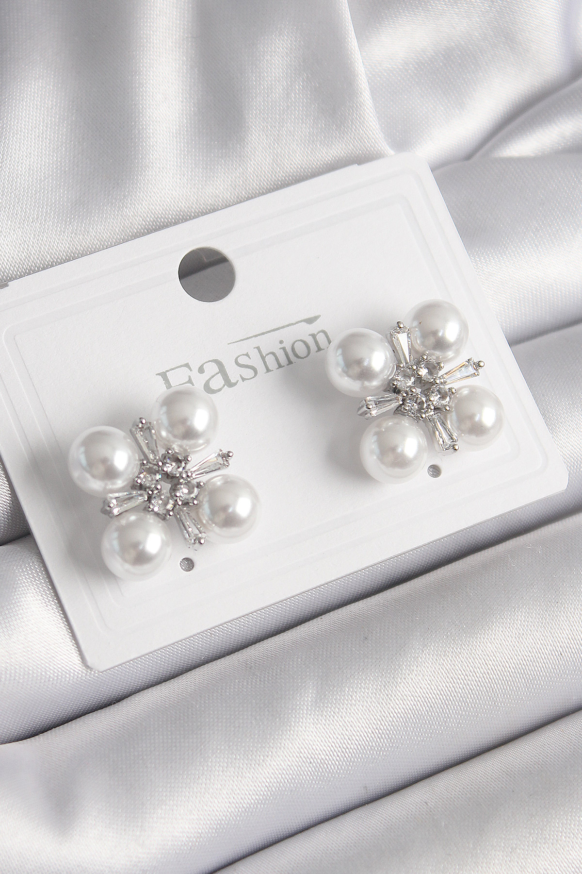 Pirinç Gümüş Renk Zirkon Taşlı İncili Kadın Küpe - TJ-BKP9948