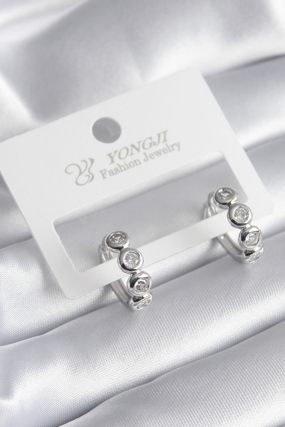 Pirinç Gümüş Renk Zirkon Taşlı Kadın Küpe - TJ-BKP8345