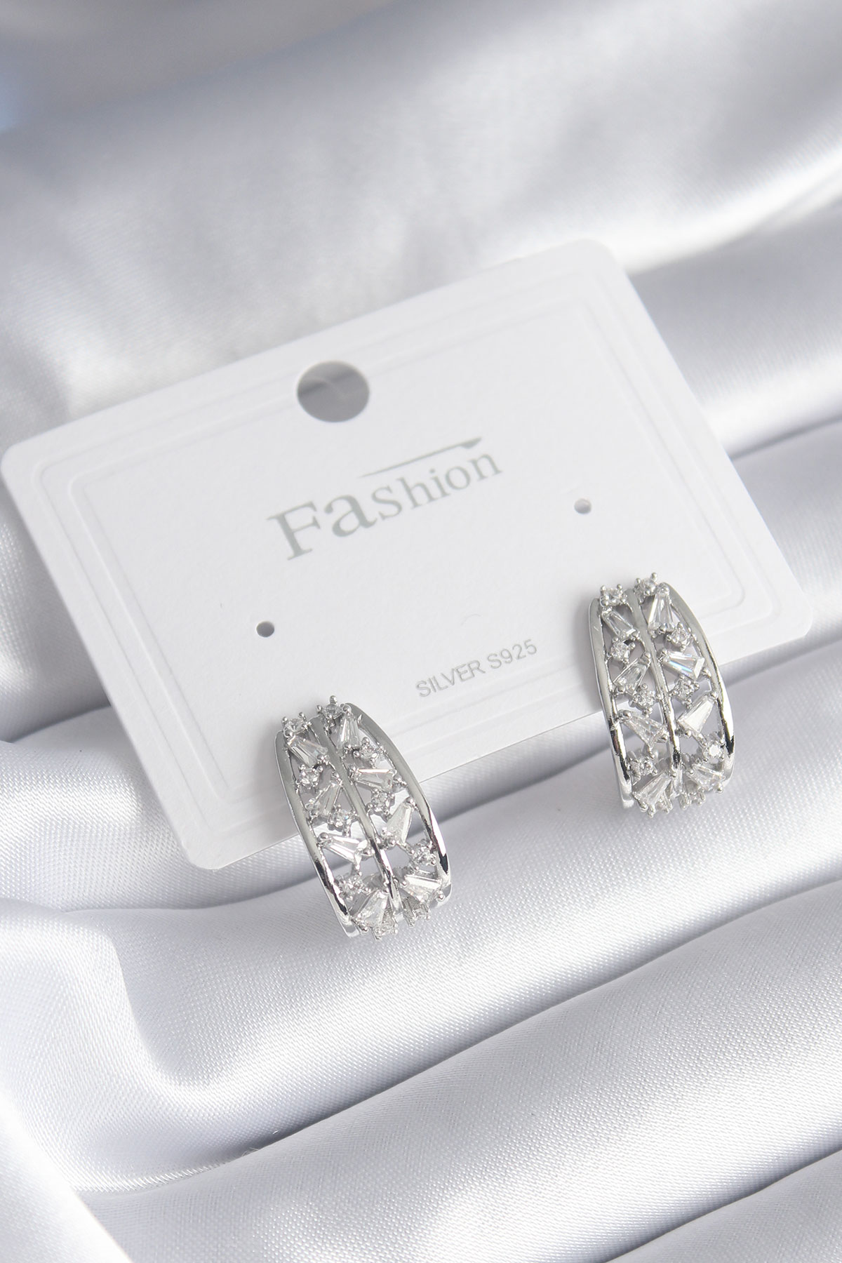 Pirinç Gümüş Renk Zirkon Taşlı Kadın Küpe - TJ-BKP8427