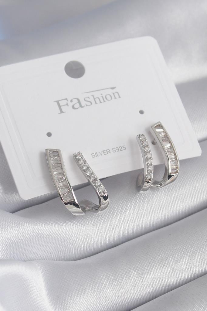 Pirinç Gümüş Renk Zirkon Taşlı Kadın Küpe - TJ-BKP8447