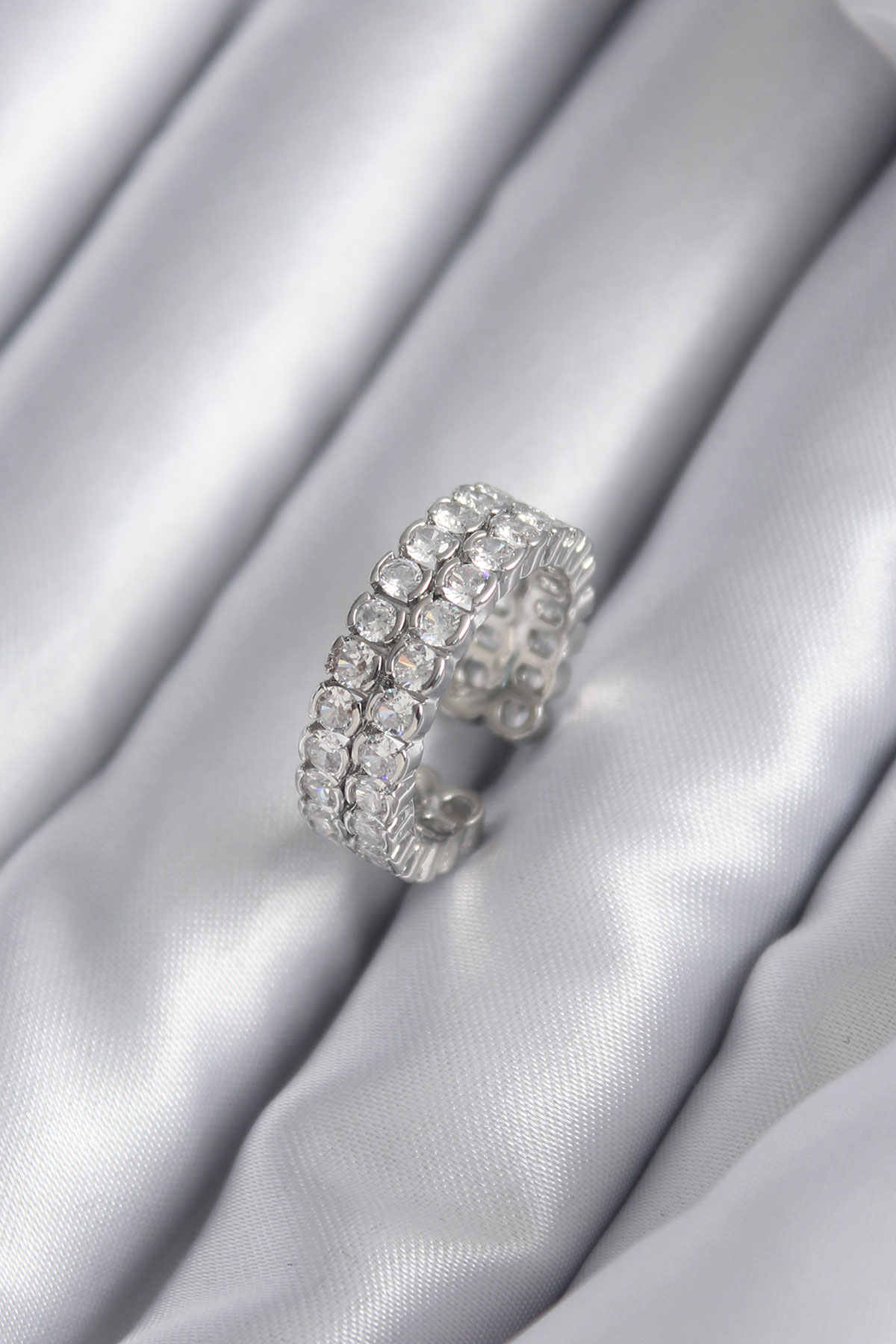 Pirinç Gümüş Renk Zirkon Taşlı Kadın Yüzük - TJ-BYK2938