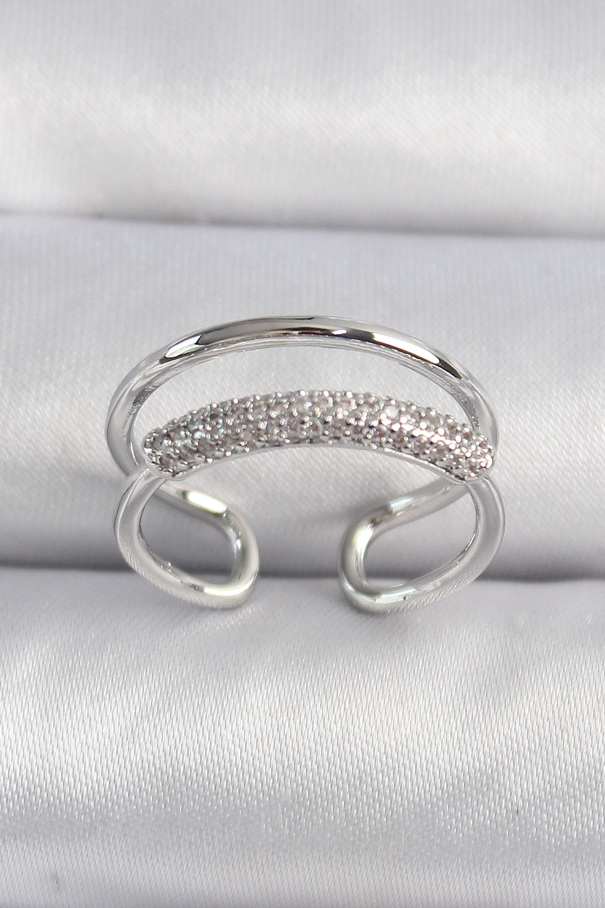 Pirinç Gümüş Renk Zirkon Taşlı Kadın Yüzük - TJ-BYK3491
