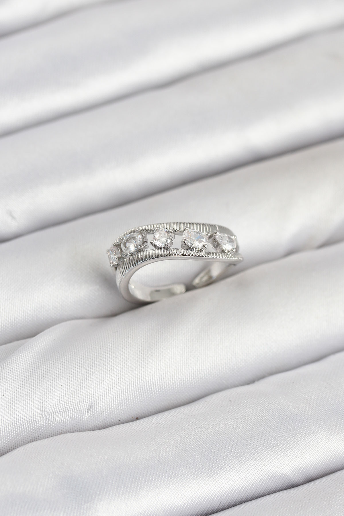 Pirinç Gümüş Renk Zirkon Taşlı Kadın Yüzük - TJ-BYK3873