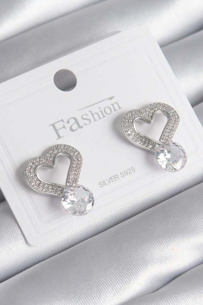 Pirinç Gümüş Renk Zirkon Taşlı Kalp Model Damla Zirkon Taş Detay Kadın Küpe - TJ-BKP8534