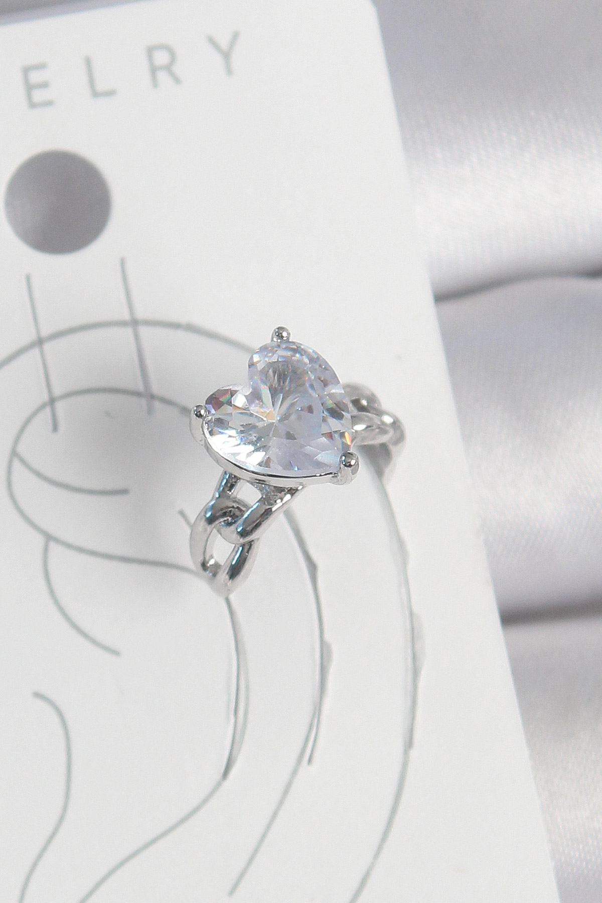 Pirinç Gümüş Renk Zirkon Taşlı Kalp Model Kadın Kıkırdak Küpe - TJ-BKP10563