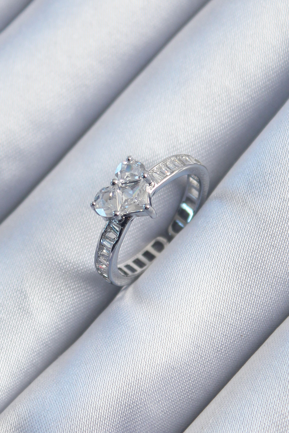 Pirinç Gümüş Renk Zirkon Taşlı Kalp Model Kadın Yüzük - TJ-BYK2911