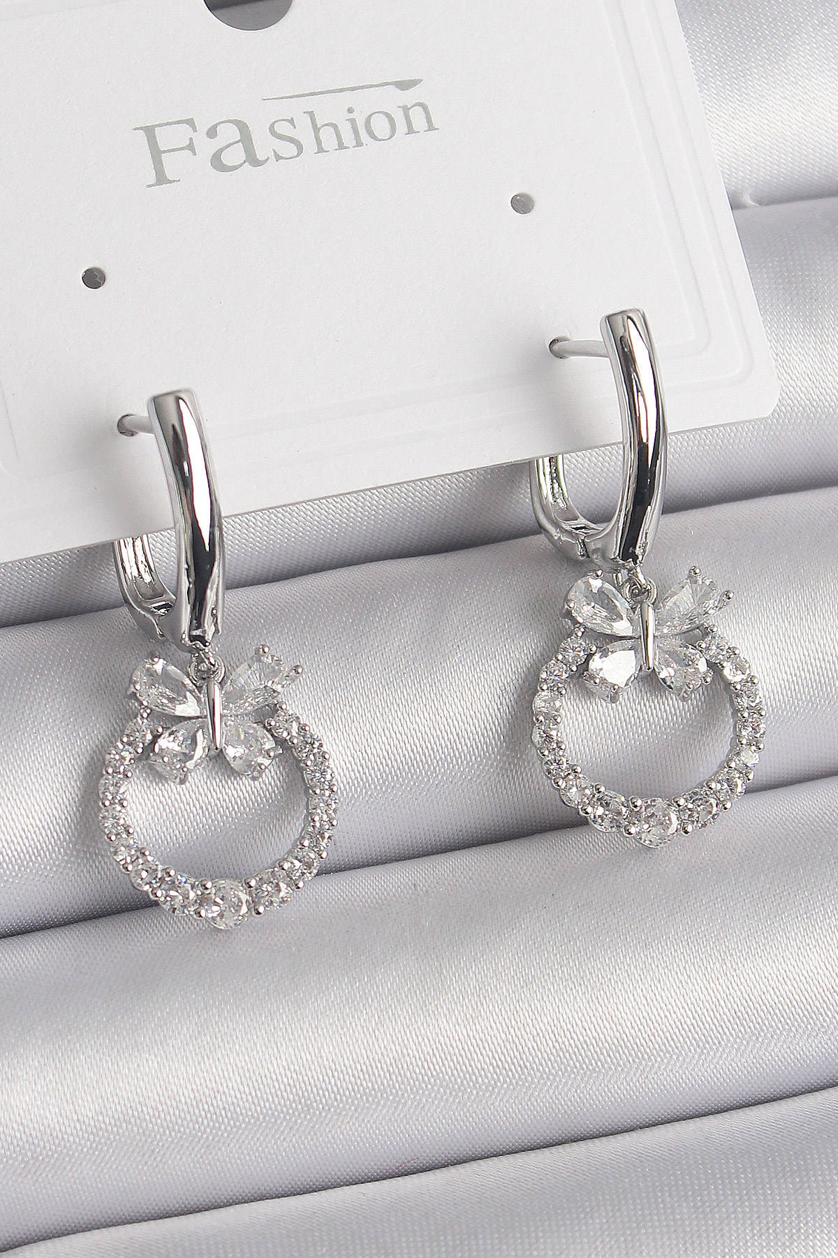 Pirinç Gümüş Renk Zirkon Taşlı Kelebek Figür Sallantı Detay Kadın Küpe - TJ-BKP9841