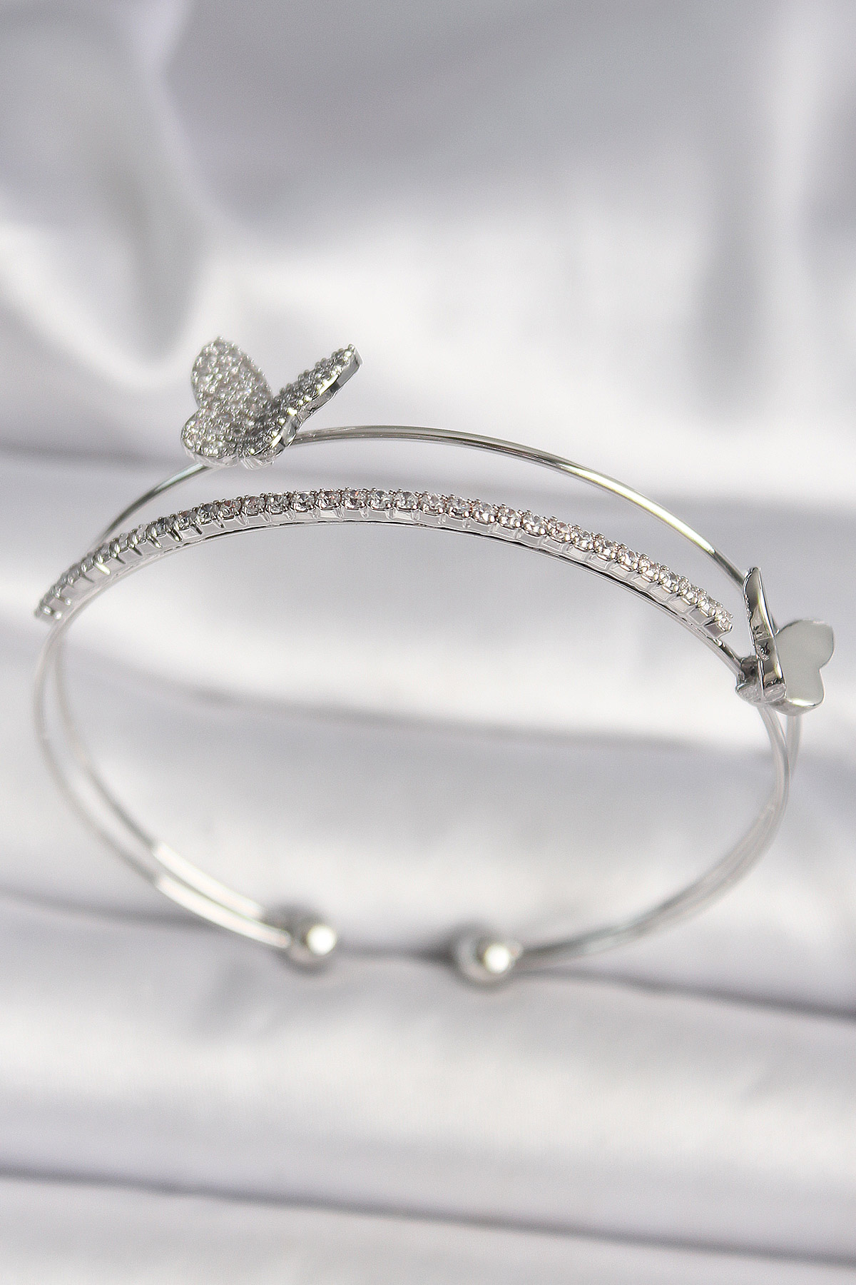 Pirinç Gümüş Renk Zirkon Taşlı Kelebek Model Kadın Bileklik - TJ-BB6740
