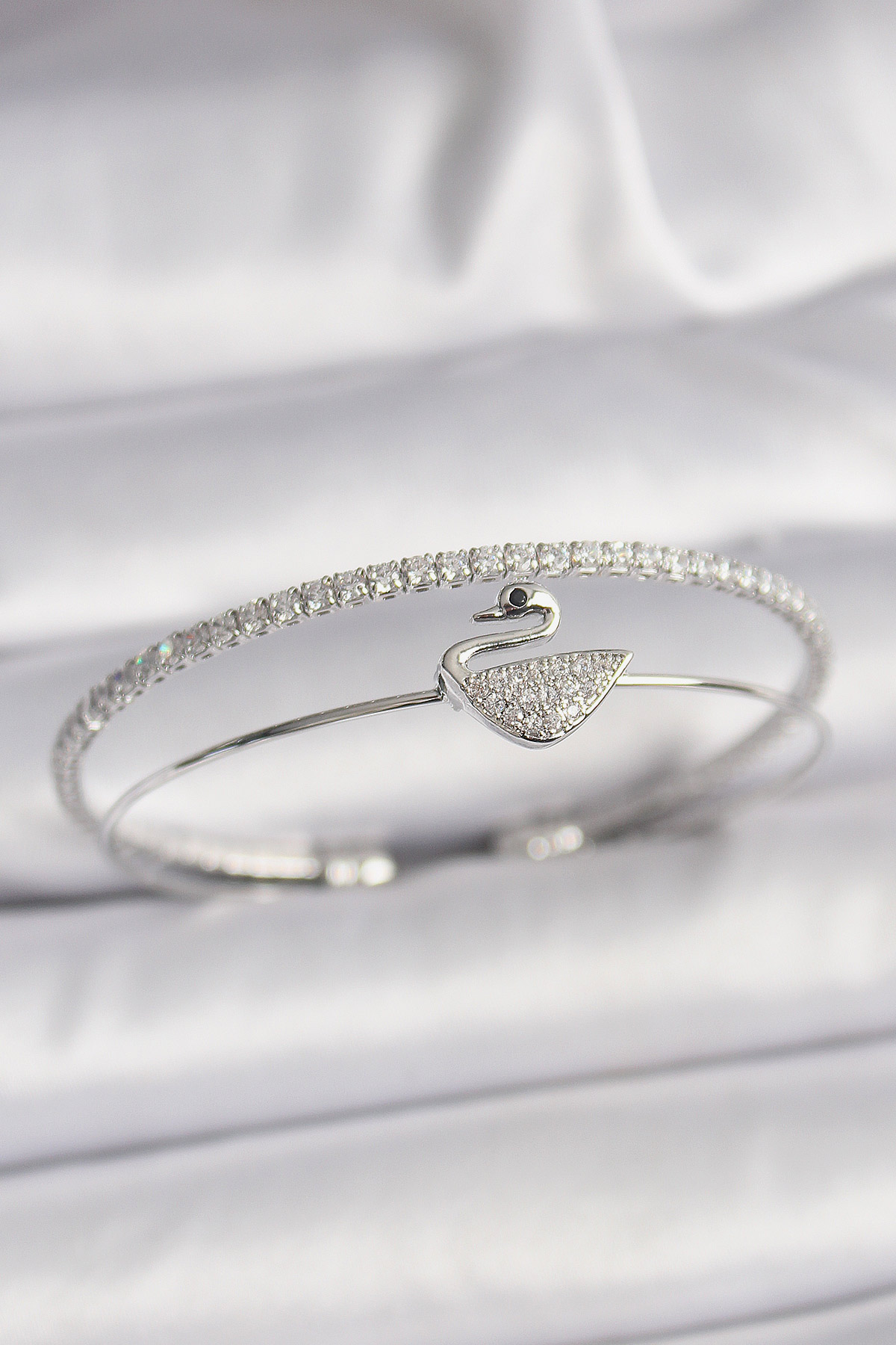 Pirinç Gümüş Renk Zirkon Taşlı Kuğu Model Kadın Bileklik - TJ-BB6541
