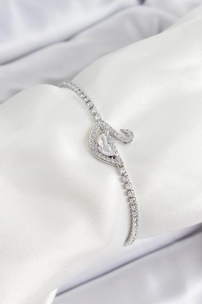 Pirinç Gümüş Renk Zirkon Taşlı Kuğu Model Kadın Bileklik - BB7073