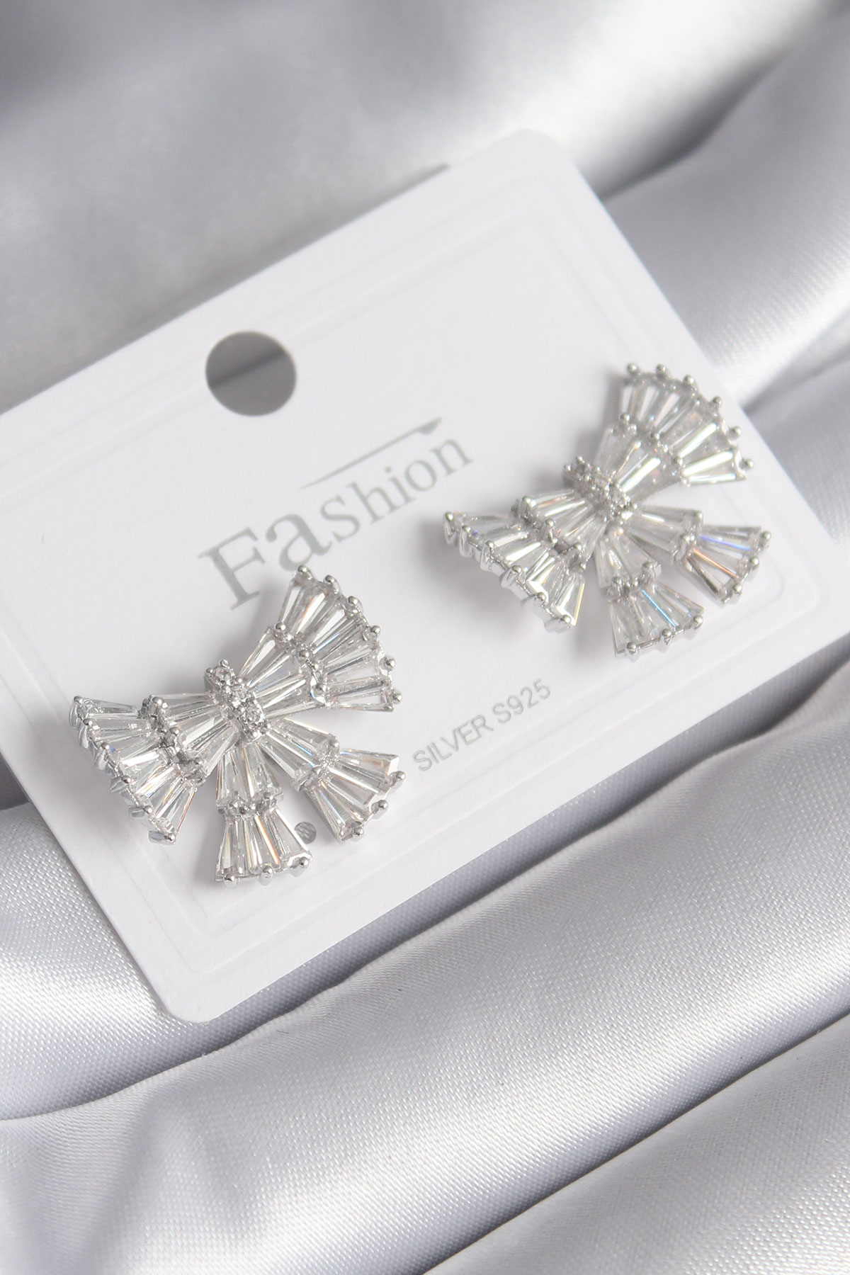 Pirinç Gümüş Renk Zirkon Taşlı Kurdele Model Kadın Küp - TJ-BKP8600