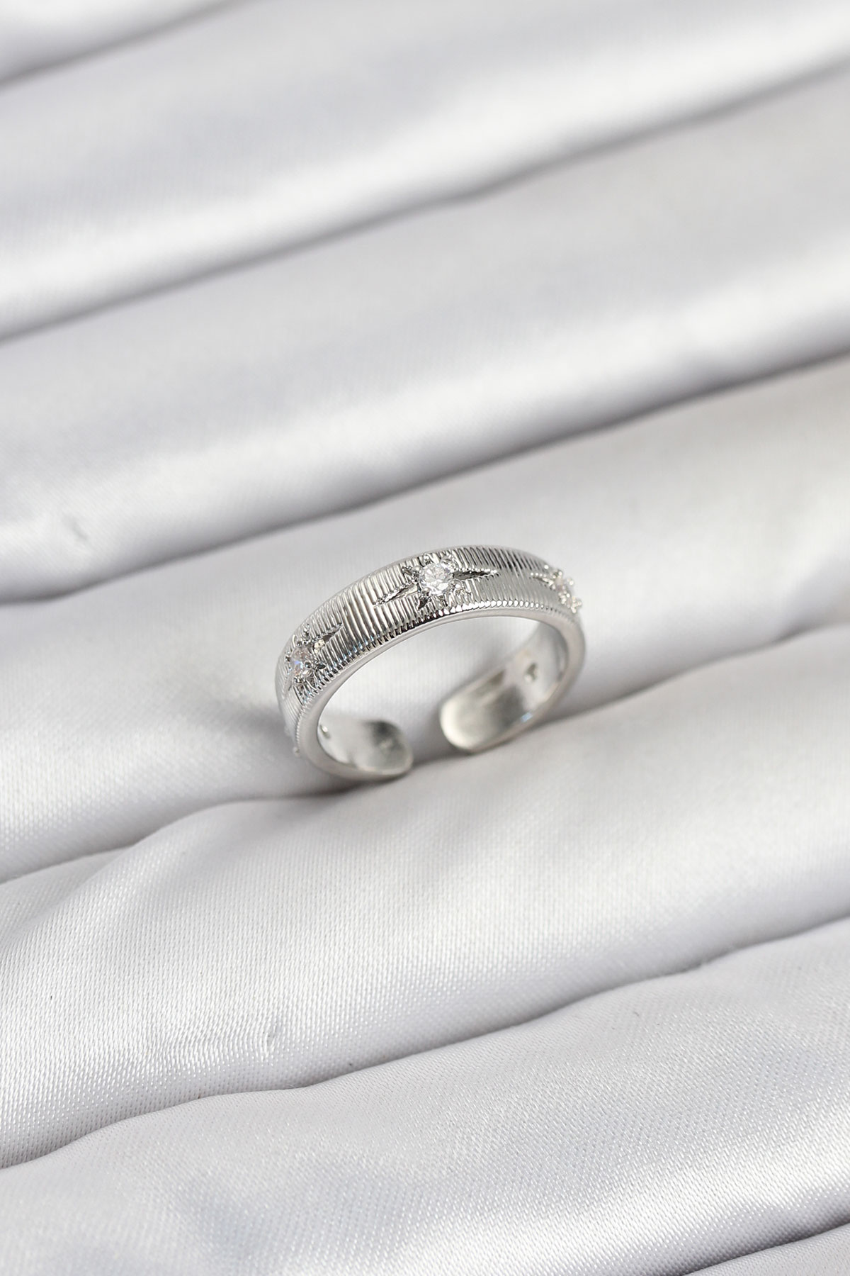 Pirinç Gümüş Renk Zirkon Taşlı Kutup Yıldızı Model Kadın Yüzük - TJ-BYK3899