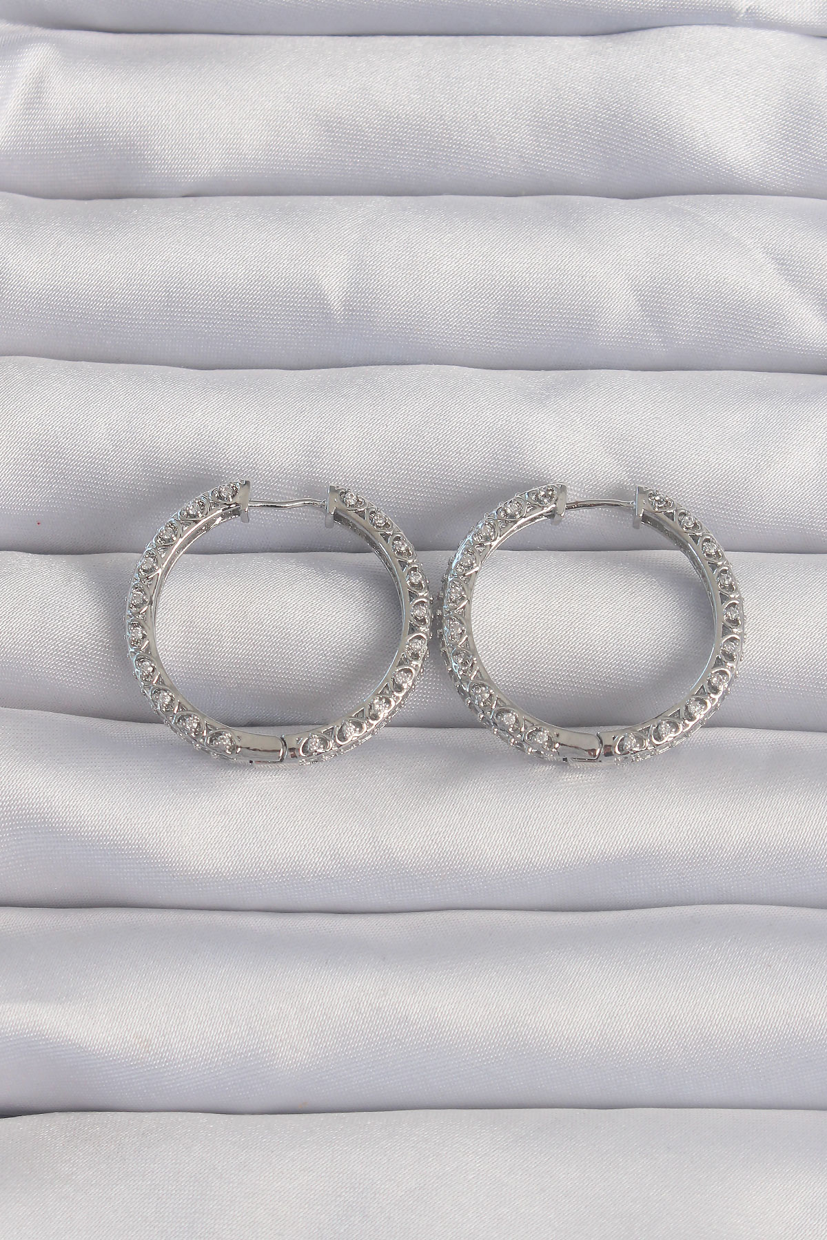 Pirinç Gümüş Renk Zirkon Taşlı Motifli Halka Küpe - TJ-BKP9282