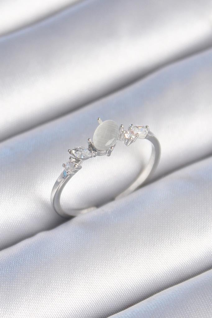 Pirinç Gümüş Renk Zirkon Taşlı Oval Beyaz Mineli Kadın Yüzük - TJ-BYK3445