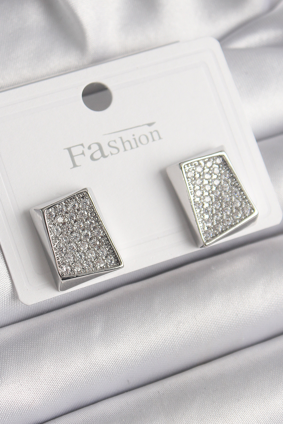 Pirinç Gümüş Renk Zirkon Taşlı Plaka Model Kadın Küpe - TJ-BKP9849
