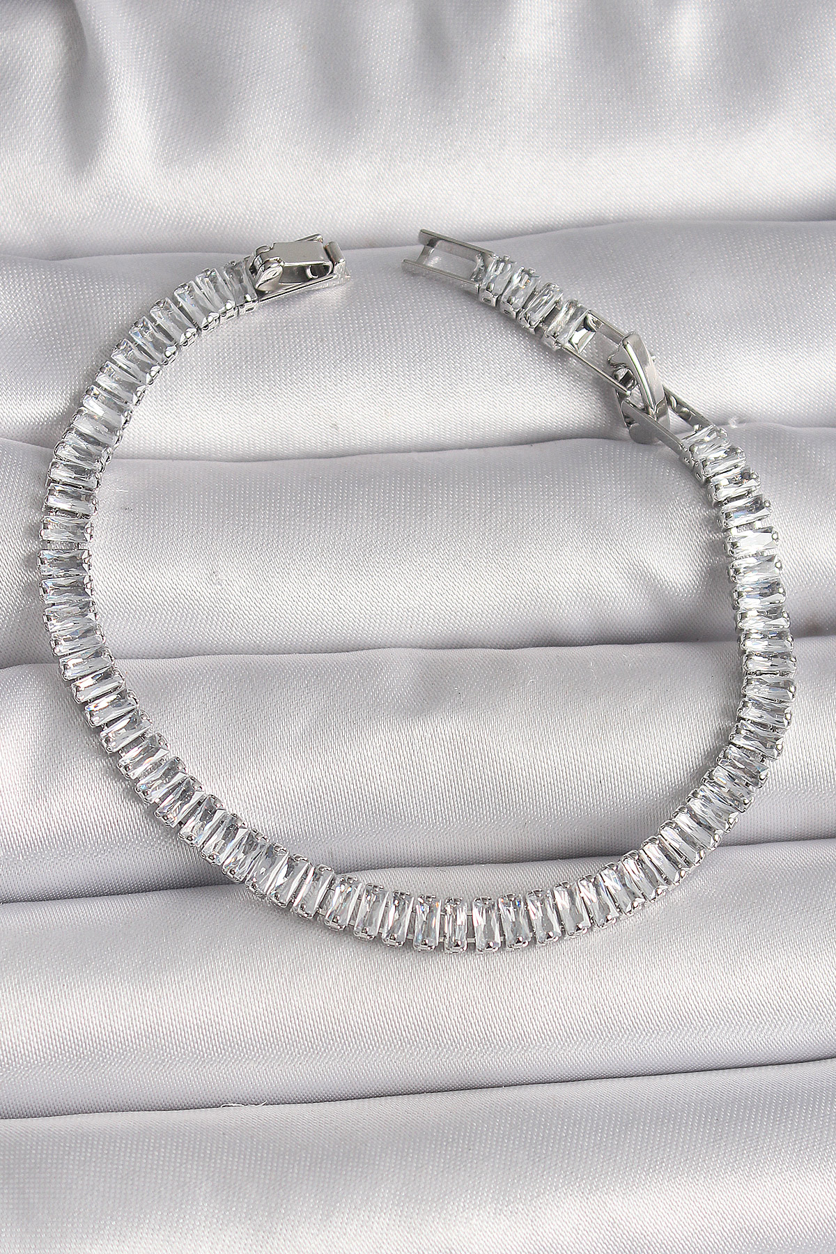 Pirinç Gümüş Renk Zirkon Taşlı Su Yolu Model Kadın Bileklik - TJ-BB6725