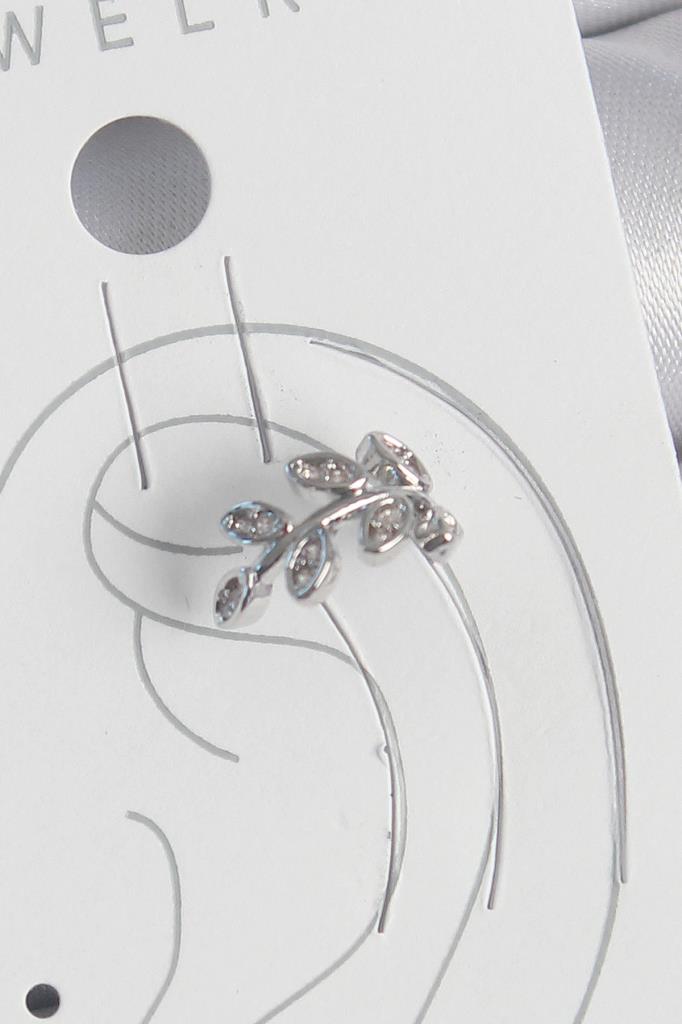 Pirinç Gümüş Renk Zirkon Taşlı Yaprak Model Kıkırdak Kadın Küpe - BKP10551