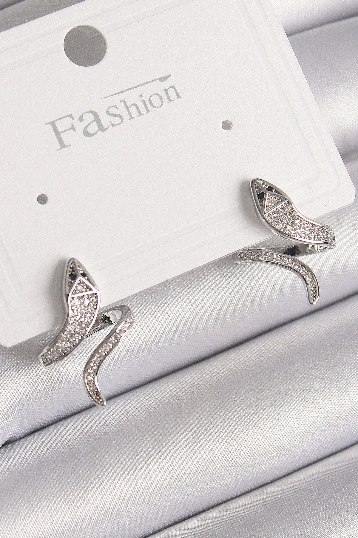 Pirinç Gümüş Renk Zirkon Taşlı Yılan Model Kadın Küpe - TJ-BKP9789