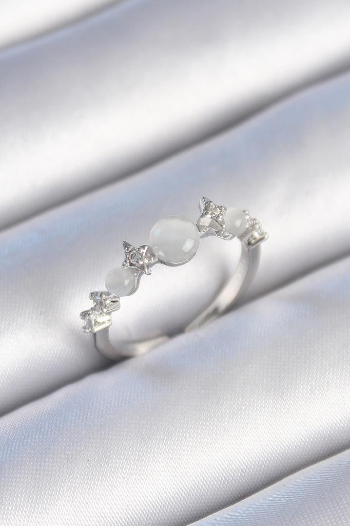 Pirinç Gümüş Renk Zirkon Taşlı Yıldız Detay Beyaz Mineli Kadın Yüzük - TJ-BYK3441