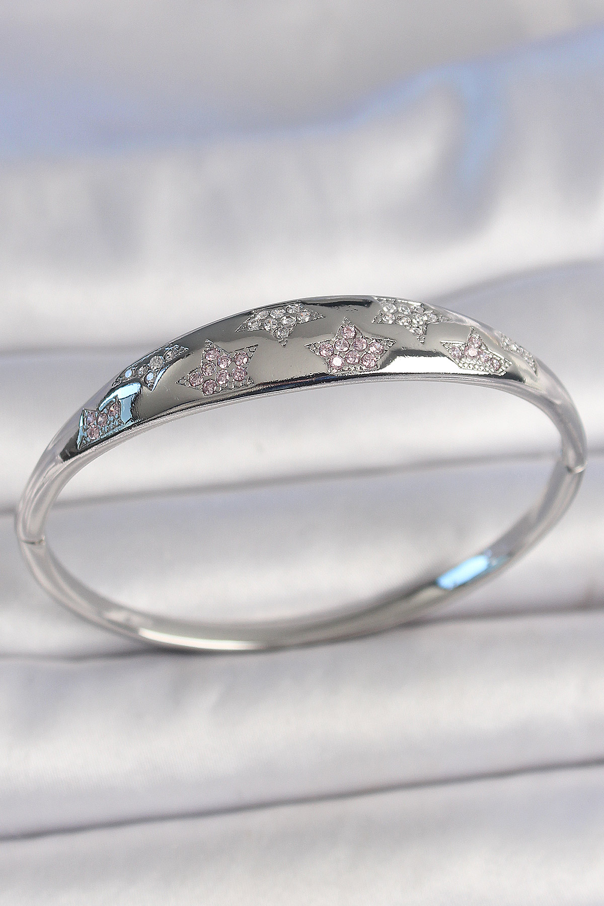 Pirinç Gümüş Renk Zirkon Taşlı Yıldız İşlemeli Kadın Kelepçe - TJ-BB6919