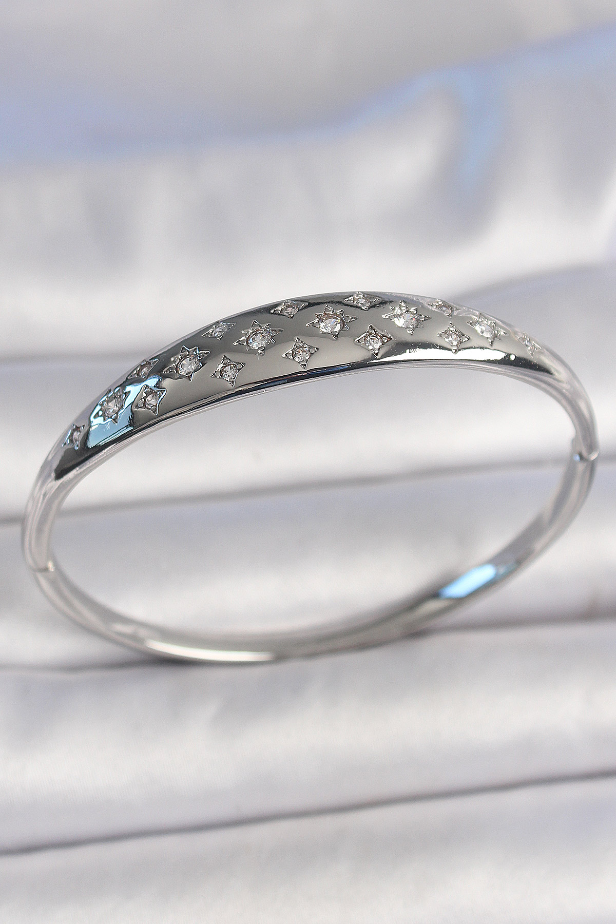 Pirinç Gümüş Renk Zirkon Taşlı Yıldız İşlemeli Kadın Kelepçe - TJ-BB6923