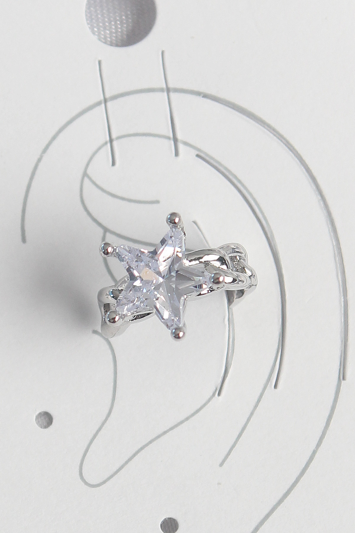Pirinç Gümüş Renk Zirkon Taşlı Yıldız Model Kadın Kıkırdak Küpe - TJ-BKP10558