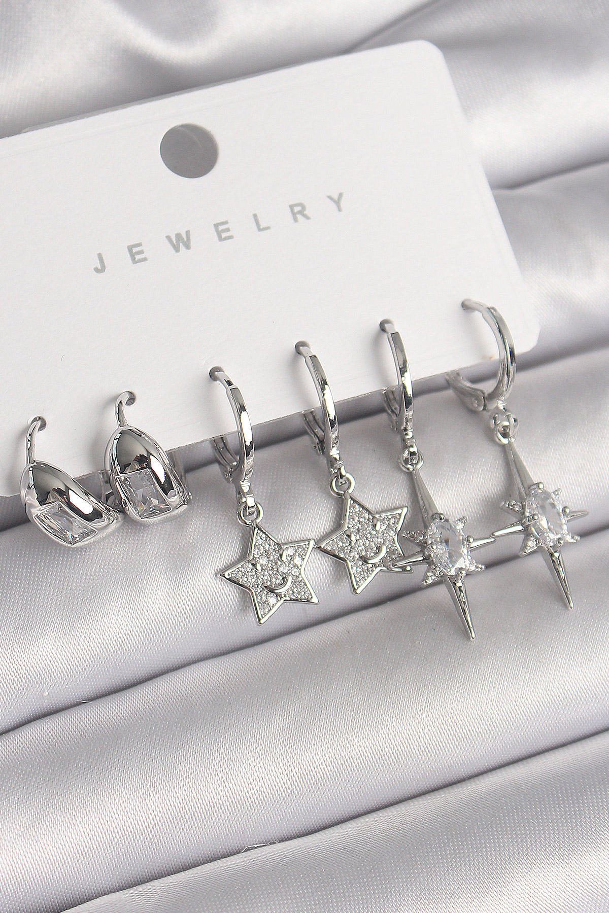 Pirinç Gümüş Renk Zirkon Taşlı Yıldız Model Kadın Küpe Seti - TJ-BKP10269