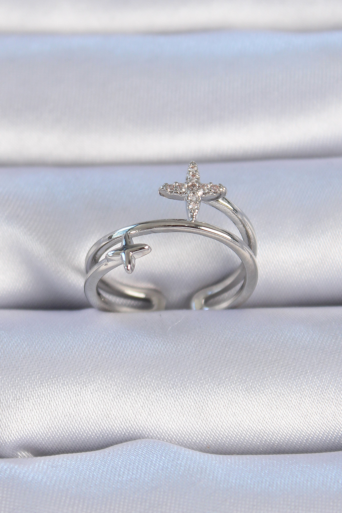 Pirinç Gümüş Renk Zirkon Taşlı Yıldız Model Kadın Yüzük - TJ-BYK3329